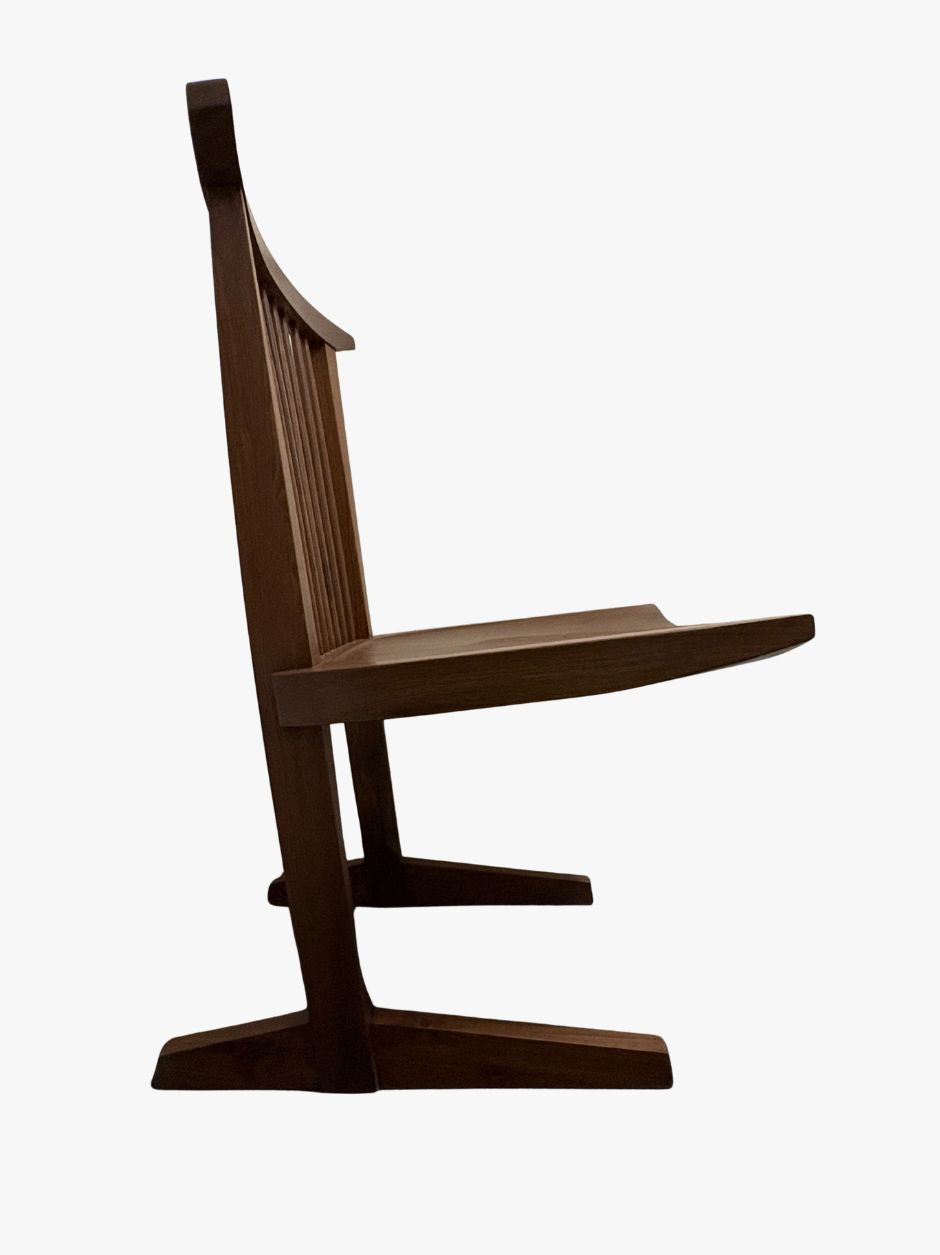 SOLID WALNUT CHAIR WITH A DISTINCTIVE ARCHED CREST RAIL AND ELEGANT VERTICAL SPINDLES, CRAFTED AS AN HOMMAGE TO THE TIMELESS DESIGN LANGUAGE OF GEORGE NAKASHIMA.