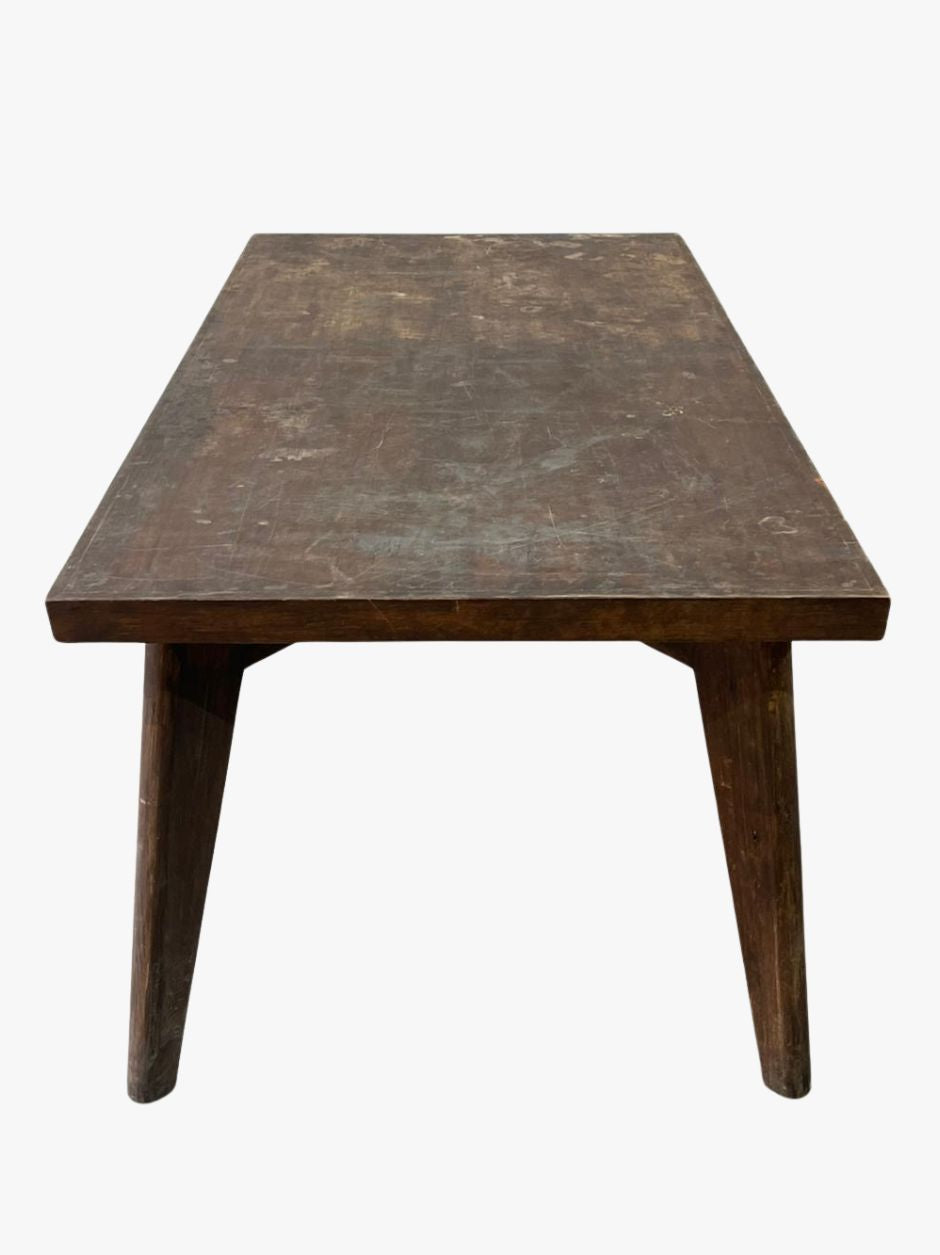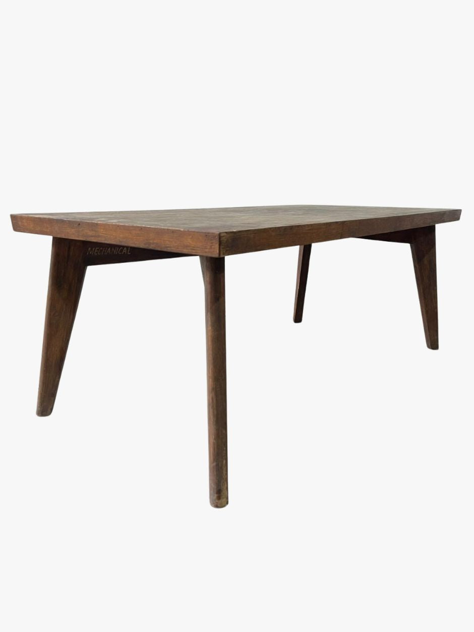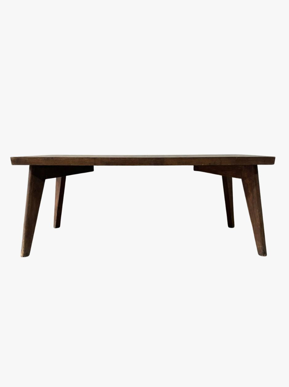 THIS ARCHITECTURAL FORM, BOTH RATIONAL AND WARM, REFLECTS JEANNERET’S MODERNIST VISION FOR THE CHANDIGARH PROJECT, COMBINING FUNCTIONAL CLARITY WITH HAND-CRAFTED DETAIL. DESIGNED FOR CIVIC AND INSTITUTIONAL INTERIORS OF POST-INDEPENDENCE INDIA, THE TABLE IS AN ICON OF MID-CENTURY DESIGN AND MODERNIST CRAFTSMANSHIP.