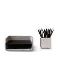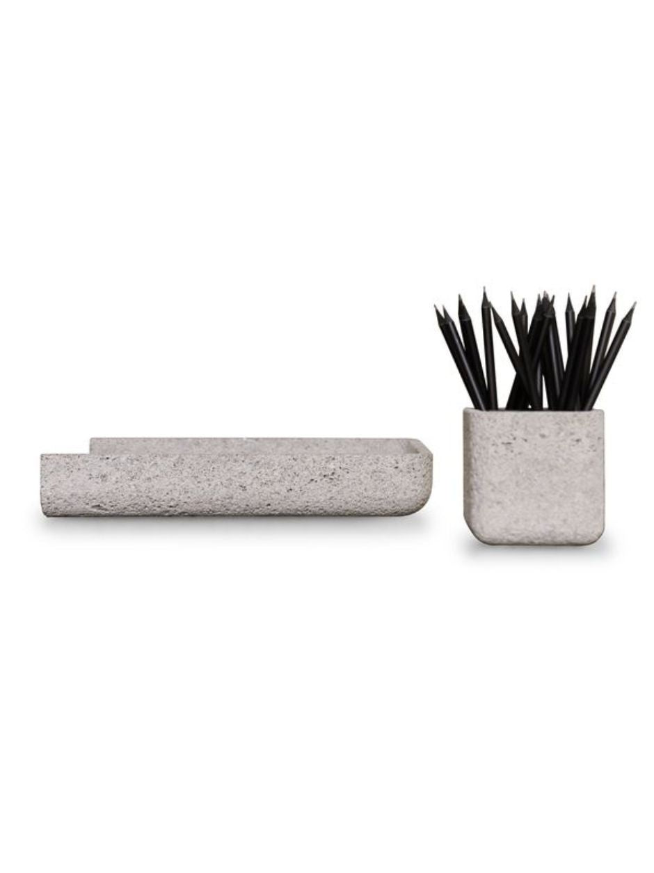 DESIGNED TO STAND ALONE OR PAIR SEAMLESSLY WITH THE MATCHING STONE DOCUMENT HOLDER, THIS PENCIL HOLDER IS A REFINED EXPRESSION OF MATERIAL HONESTY AND TRADITIONAL CRAFT. A TIMELESS DESK OBJECT MADE TO BE USED AND KEPT FOR LIFE.