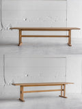 EVOKING THE TIMELESS CHARM OF AN OLD FRENCH FARMHOUSE, THIS MODERN TRAPPIST TABLE IS A CELEBRATION OF TRADITIONAL CRAFTSMANSHIP AND ENDURING DESIGN. HANDCRAFTED IN BELGIUM FROM SOLID OAK, EACH TABLE SHOWCASES THE RICH GRAIN AND NATURAL BEAUTY OF THE WOOD, BROUGHT TO LIFE BY SKILLED ARTISANS USING TRADITIONAL TECHNIQUES.