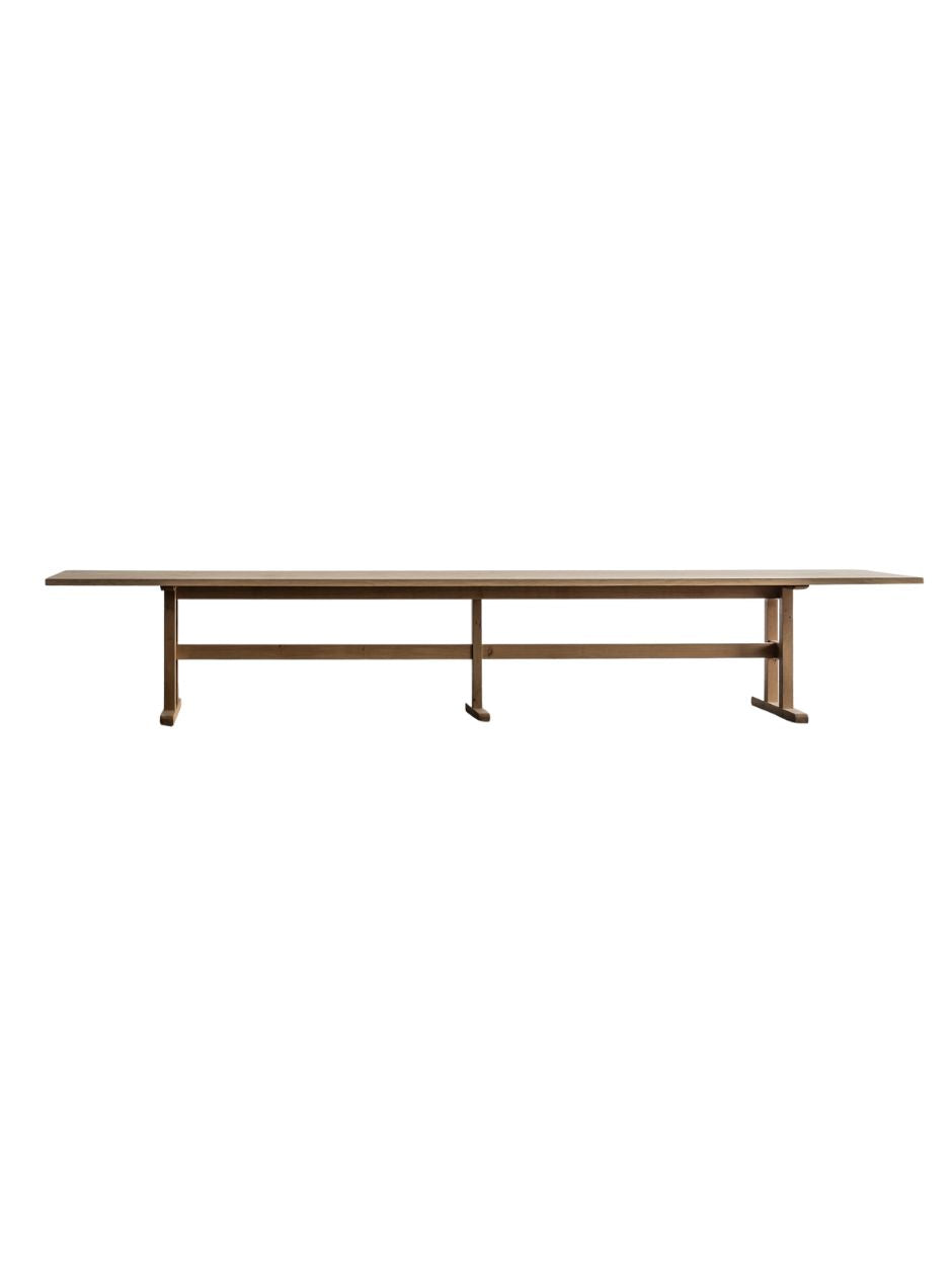 BUILT TO MAKE A STATEMENT, THE TRAPPIST TABLE IS AVAILABLE IN LENGTHS UP TO AN EXTRAORDINARY 5 METERS—PERFECT FOR GRAND DINING HALLS, COMMUNAL SPACES, OR STATEMENT INTERIORS. THE EXTENDED VERSIONS ARE DESIGNED WITH THREE STURDY LEGS, ENSURING BOTH STABILITY AND VISUAL HARMONY AT SCALE.