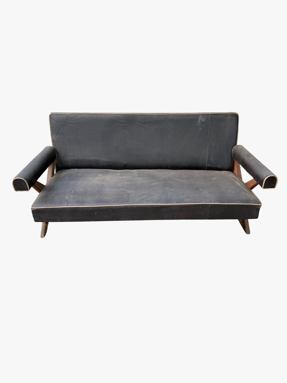 A RARE “X-LEG” SOFA (MODEL PJ-SI-48-B) DESIGNED BY PIERRE JEANNERET FOR THE CHANDIGARH ADMINISTRATIVE AND CIVIC BUILDINGS, CIRCA 1960.