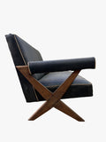CONSTRUCTED IN SOLID TEAK WITH JEANNERET’S SIGNATURE X-SHAPED SIDE SUPPORTS JOINED BY A STRETCHER, THE PIECE BALANCES ARCHITECTURAL PRESENCE WITH HUMAN SCALE. THE OPEN FRAME, SLIGHTLY TILTED BACKREST, AND COMFORTABLE SEAT EMBODY JEANNERET’S SYNTHESIS OF FUNCTIONALITY, PROPORTION, AND MATERIAL HONESTY.