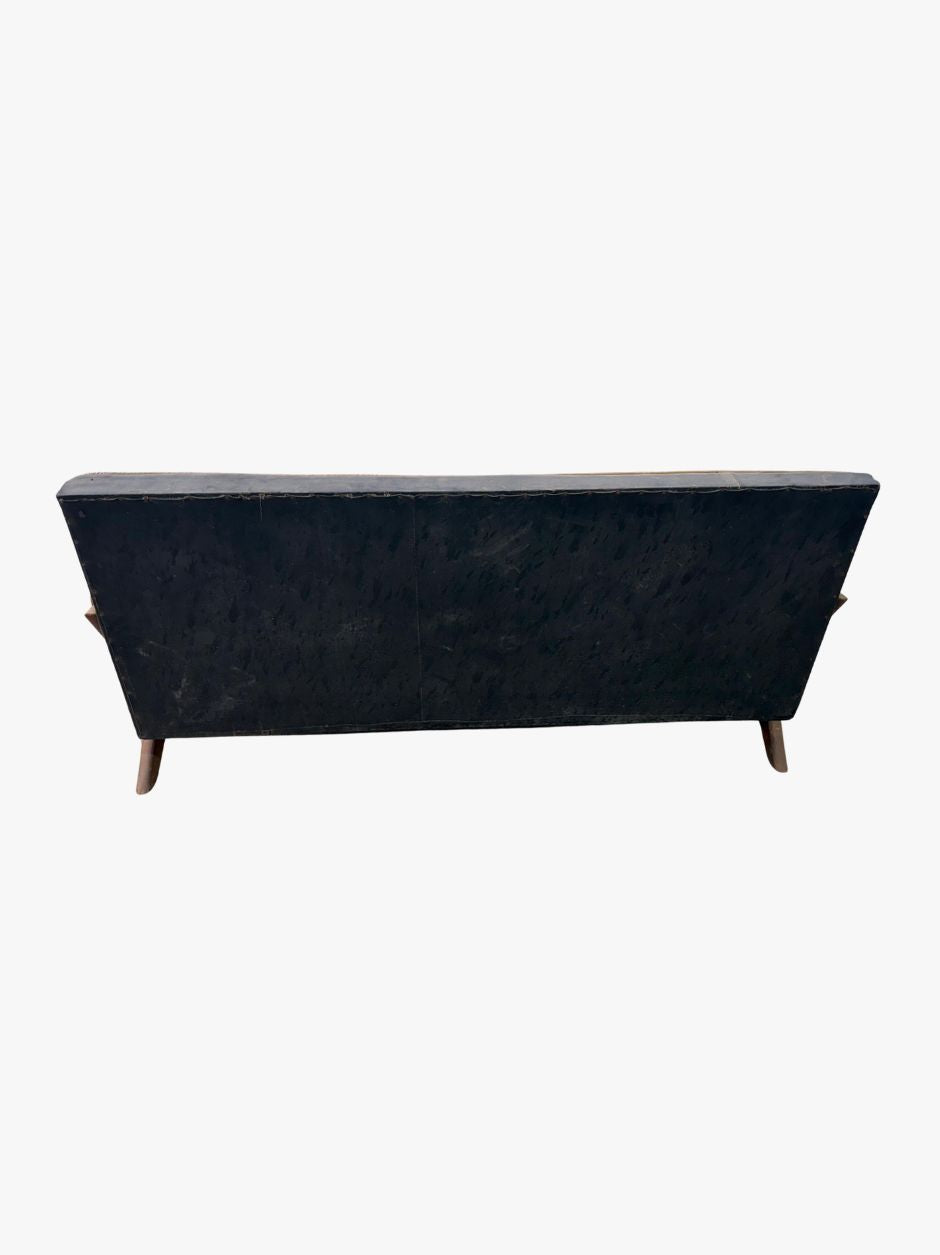ORIGINALLY UPHOLSTERED IN HIDE, THE SOFA WILL BE LIGHTLY RESTORED TO PRESERVE ITS PATINA AND STRUCTURAL INTEGRITY, AND RE-UPHOLSTERED IN NATURAL HIDE OR AN ALTERNATIVE FABRIC OF THE BUYER’S CHOOSING.